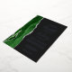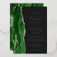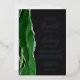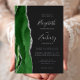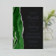 The left-hand edge of this elegant modern wedding invitation features a hunter green watercolor agate border trimmed with faux silver glitter. The customisable text combines handwriting, copperplate and italic fonts in real silver foil on an off-black background. The reverse side features a matching green and silver agate design.