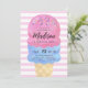 Cute Modern Blush Pink Light Blue Pastel Watercolor Rainbow Sprinkle Scoop Cone Kids Ice Cream Birthday Invitation