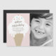 A whimsical kids birthday party invitation featuring hand drawn drippy ice cream cone with rainbow sprinkles and photo of child. All text and background colour is customisable so you can easily change the font, colour, message and placement to make it truly unique. Click the edit button to customise this design.