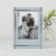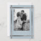 Photo Wedding Save the Date. Icy Blue background. Black and White filter applied to photo. Metallic Silver.