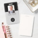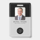 Professional elegant black and grey ID badge template with employee photo, custom logo, text, and image (barcode or QR code). +++++++++++++ Easy to personalise on both sides with all your details.