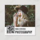 Show off a favourite shot on these modern square business cards for photographers or photography professionals. Design features two lines of custom text beneath your photo, along with a customisable QR code. Add your full contact information on the reverse side in crisp, modern black lettering.
