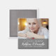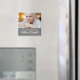 A modern sympathy magnet features photo along the top with script and class font overlaying on grey. Decorative heart, this magnet is a true keepsake.