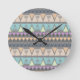 Modern Indian Geometric Triangles and Stripes Round Clock