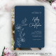 Modern Indigo Blue Foliage Outline Photo Wedding Invitation