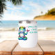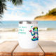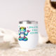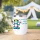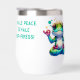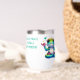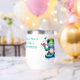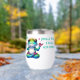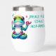 Inhale Peace, Exhale Hop-Piness, funny, cute frog is practicing meditation and reflecting on the importance of just breathing. Colourful in green and pink, on a Stemless Wine Tumbler.