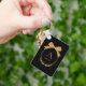 Modern Initial Black and Gold Chic Bow Monogram Key Ring