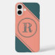 This case features a centred geometric double circle in teal over a pale salmon background. Personalise the text field with an initial letter or use the edit design tool to select a front colour, size, and style your prefer. It's a sweet personalised gift for a special occasion or the purchase of a new phone.
