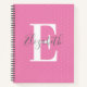 Girly personalised notebook featuring a pretty pink background, a cute polka dot pattern, your initial, and name in a elegant script font.
