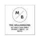 Select any colour for this self-inking rubber stamp featuring your initials, name and address in a simple, modern fonts.