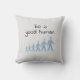 Decorative pillow with BE A GOOD HUMAN in handwriting font - decorated with a sketch of cute little humans.