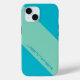This modern case for the iPhone 15 is Blue with one diagonal thick Green stripe. Text is on the diagonal in the green stripe. Simple but eye-catching! Easy to personalise, or delete example text. All Rights Reserved © 2024 Alan & Marcia Socolik.