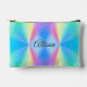 This beautiful accessory pouch features an iridescent, modern design in pastel rainbow colours. Looks like the northern lights. Colourful personalizable toiletry bag for her or pencil case for girls!