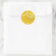 Modern Italian Summer Wedding Classic Round Sticker features your names in an elegant calligraphic fonts over a vibrant yellow background which captures the joy and warmth of a summer wedding. Ideal for favour labels, invitations, or as a sweet personal touch on your wedding decor.
