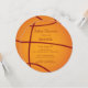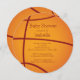 Cute boys baby shower invitation featuring a round die cut circle basketball. Flip our modern baby shower invitation for a baby boy over to view a matching back for an extra special touch.
