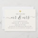 This minimal engagement party invite shines through its simplicity. Beautiful script with flourishes reads "The Future Mr. and Mrs" alongside your personal celebration details in modern typography. Above sits a delicate faux gold heart.