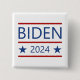 Shows "Biden 2024" in blue text, framed within red lines and patriotic blue stars. Modern, bold, stylish.
