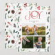 Modern Joy Red Berry Botanical 3 Photo Christmas Holiday Card