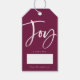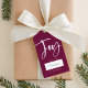 Add a custom touch to your holiday gifts by adding our Joyful Script holiday gift tags. The custom holiday gift tags feature the word "Joy" in a white, modern hand-lettered script against a berry purple background. Personalise by adding your name or custom text. The back features a pine tree pattern in purple and white.