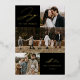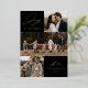 Modern holiday card featuring the phrase "Joy to the World" in elegant gold foil script with a black background. The front of the design features 3 of your favourite family photos arranged in a collage-style layout. Personalise the front of the multi-photo holiday card with your family name and the year. The card reverses to display an additional photo.