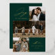 Modern holiday card featuring the phrase "Joy to the World" in elegant gold foil script with a spruce green background. The front of the design features 3 of your favourite family photos arranged in a collage-style layout. Personalise the front of the multi-photo holiday card with your family name and the year. The card reverses to display an additional photo.