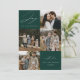 Modern holiday card featuring the phrase "Joy to the World" in elegant white script with a spruce green background. The front of the design features 4 of your favourite family photos arranged in a collage-style layout. Personalise the front of the multi-photo holiday card with your family name and the year. The card reverses to display an additional photo.