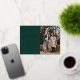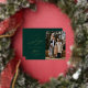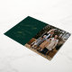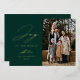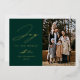 Modern holiday photo card featuring the phrase "Joy to the World" in elegant gold foil script with a spruce green background. Personalise the front of the elegant holiday card with your family name, year, and vertical photo.