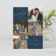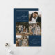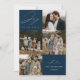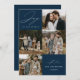 Modern holiday card featuring the phrase "Joy to the World" in elegant white script with a navy background. The front of the design features 4 of your favourite family photos arranged in a collage-style layout. Personalise the front of the multi-photo holiday card with your family name and the year. The card reverses to display an additional photo.