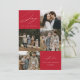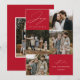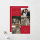 Modern holiday card featuring the phrase "Joy to the World" in elegant white script with a red background. The front of the design features 4 of your favourite family photos arranged in a collage-style layout. Personalise the front of the multi-photo holiday card with your family name and the year. The card reverses to display an additional photo.