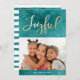 Modern Joyful Gold Teal Watercolor Photo Holiday Card