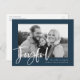 Modern Joyful Script Navy Holiday Photo Postcard