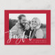 Wish friends and family a happy holiday with our Joyful Script holiday photo postcards. The modern holiday postcard features the word Joyful in a white, hand-lettered script overlay with your favourite photo framed in red. Personalise the postcard by adding your names, return address & a custom greeting.