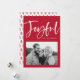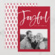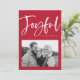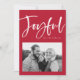 Wish friends and family a joyful season with this modern holiday photo card featuring “Joyful” in white hand-lettered script on a deep red background. Personalize the front with your favorite photo and family name. The back displays a coordinating red and white Christmas tree pattern for a festive and contemporary touch.