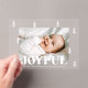 Celebrate the season with this festive acrylic Christmas card, featuring your horizontal photo surrounded by a charming border of white hand-drawn pine trees on a transparent acrylic background. The word "Joyful" is prominently displayed in bold white lettering, with space below to add your custom greeting and family name for a personal touch. Perfect for sharing holiday cheer, this custom pine tree holiday card combines natural charm with a modern acrylic design to create a truly memorable way to celebrate the season.