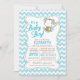 Modern bold & bright safari baby shower invitation featuring a cute brown & blue monkey for a boys baby shower. Our contemporary jungle invite is set on a blue & white stripe chevron background and has a matching back for an extra special touch. Perfect for a sweet jungle safari animal themed baby shower.