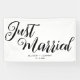 Modern Just Married Wedding Reception Banner is a simple boho black and white wedding party banner for your wedding reception party.