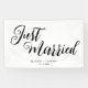 Modern Just Married Wedding Reception Banner is a simple boho black and white wedding party banner for your wedding reception party.