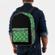 The bright Kelly Green accents contrast beautifully with the black geometric layout, giving this backpack a fresh, modern, and artistic edge. A perfect choice for students, creatives, and travelers who value both function and fashion.