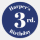 Modern Kids Birthday navy blue custom name number Classic Round Sticker