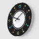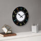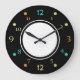 Here is a unique modern kitchen wall clock design with a colourful clock face with unique number markings and black background that adds powerful contrast to this artsy design.