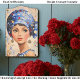 This vibrant portrait features a young woman with large brown eyes and a serene expression, dressed in a patterned blue head wrap and matching sleeveless dress. Her outfit is decorated with geometric shapes, circles, and shimmering gold accents, reminiscent of Gustav Klimt’s decorative style yet with a fresh, modern twist. The head wrap and statement earrings add a hint of bohemian flair, blending artistic sophistication with free spirited charm. The background continues the geometric motif creating a sense of depth and movement. Artwork similar to a stylised oil painting with mosaic and Art Deco influences……COLOR COMBINATIONS: Royal blue, crimson red, gold, cream, pink, beige……PERFECT FOR: Decoupage with an Art Deco or Klimt inspired theme, mixed media portrait projects, furniture upcycling with an artistic or boho twist, craft projects such as altered books and journals, and statement gift wrap...…... 🖤 NOTE 1. This design is available in two options: Left and Right. You can find them in the Collection shown below. If they don’t appear there, try searching for their unique identifiers: EC5L for the Left design and EC5R for the Right version….🖤 NOTE 2. The 18 lb tissue is a great choice if you like a little extra strength—it's easier to handle, resists tearing and allows for gentle repositioning. It’s also more opaque, making it perfect for darker surfaces. The 10 lb tissue is wonderfully lightweight and flexible giving you that smooth, blended finish. It’s ideal for layering on furniture or smaller projects so treat it gently and it will reward you with stunning results!.….🖤 NOTE 3. All items with this particular design share my unique identifying “Letter/s Number/s” label in the title for easy searching. …..🖤