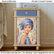 This vibrant portrait features a young woman with large brown eyes and a serene expression, dressed in a patterned blue head wrap and matching sleeveless dress. Her outfit is decorated with geometric shapes, circles, and shimmering gold accents, reminiscent of Gustav Klimt’s decorative style yet with a fresh, modern twist. The head wrap and statement earrings add a hint of bohemian flair, blending artistic sophistication with free spirited charm. The background continues the geometric motif creating a sense of depth and movement. Artwork similar to a stylised oil painting with mosaic and Art Deco influences……COLOR COMBINATIONS: Royal blue, crimson red, gold, cream, pink, beige……PERFECT FOR: Decoupage with an Art Deco or Klimt inspired theme, mixed media portrait projects, furniture upcycling with an artistic or boho twist, craft projects such as altered books and journals, and statement gift wrap...…... 🖤 NOTE 1. This design is available in two options: Left and Right. You can find them in the Collection shown below. If they don’t appear there, try searching for their unique identifiers: EC5L for the Left design and EC5R for the Right version….🖤 NOTE 2. The 18 lb tissue is a great choice if you like a little extra strength—it's easier to handle, resists tearing and allows for gentle repositioning. It’s also more opaque, making it perfect for darker surfaces. The 10 lb tissue is wonderfully lightweight and flexible giving you that smooth, blended finish. It’s ideal for layering on furniture or smaller projects so treat it gently and it will reward you with stunning results!.….🖤 NOTE 3. All items with this particular design share my unique identifying “Letter/s Number/s” label in the title for easy searching. …..🖤
