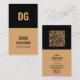 Modern Kraft & Black Minimalist Vertical QR Code Business Card