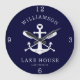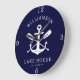 Modern Lake House Family Name Nautical Navy Blue Large Clock