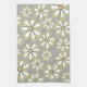 Modern Large White Yellow Daisies Grey Tea Towel