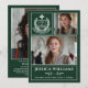 Celebrate your graduate in timeless style with this modern 3-photo Class of 2026 graduation announcement. Featuring a dark evergreen green layout, elegant white typography, and a classic white laurel crest “Graduate” emblem, this customizable design beautifully showcases three senior portraits along with the graduate’s name, school, and heartfelt message.