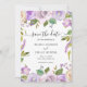 Purple floral wedding save the date card with a border of watercolor painted flowers in shades of pastel violet, lavender, lilac and ivory. This elegant non photo save the date is great for a couple who wants a save the date without pictures and is perfect for a spring or summer wedding.