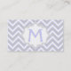 Modern lavender purple, grey chevron monogram business card