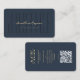 Modern Law Firm Lawyer Dark Blue Justice Monogram Name initials Gold business card with QR code