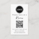 Modern, elegant and simple business card to invite customers to leave you a review using a QR code to direct them to your social media, or website this vertical business card features a custom business logo and additional text for tagline, or contact information. The perfect strategy to build an audience, increase followers, grow your customer base and create community to generate quality advertisement.